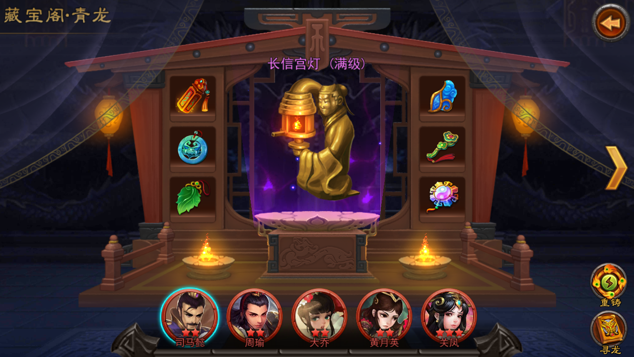 9.0版本更新之初,有些主公询问藏宝阁界面左上角的“青龙”是什么意思?当时鉴于宝物培养进度不深,只是简单说明了“青龙”代表藏宝阁的层数。